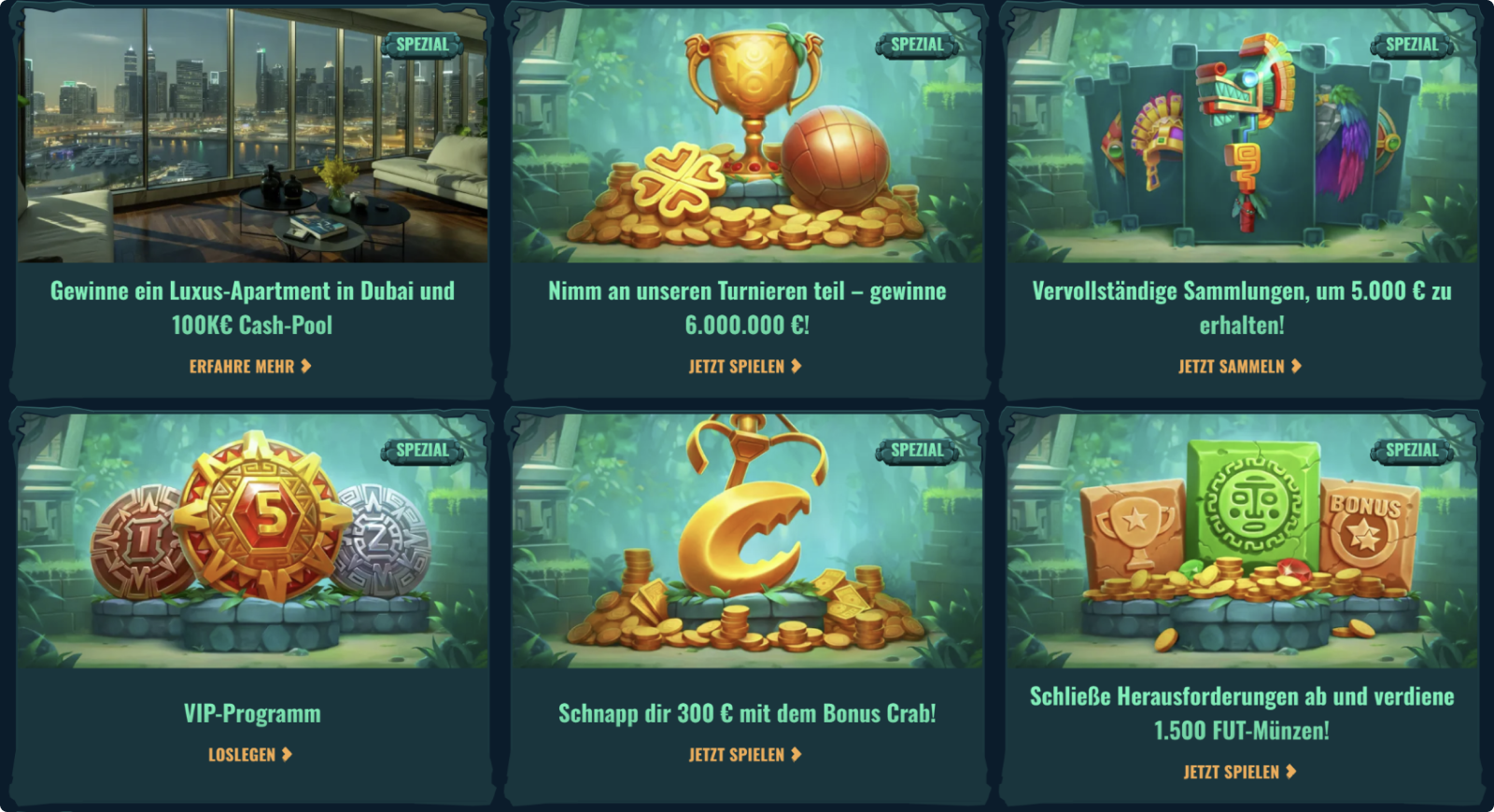 Die Erfüllung spezieller Aufgaben ermöglicht die Freischaltung von bis zu 5.000€. Die genauen Aktionsbedingungen sind im persönlichen Bereich des Spielers verfügbar.